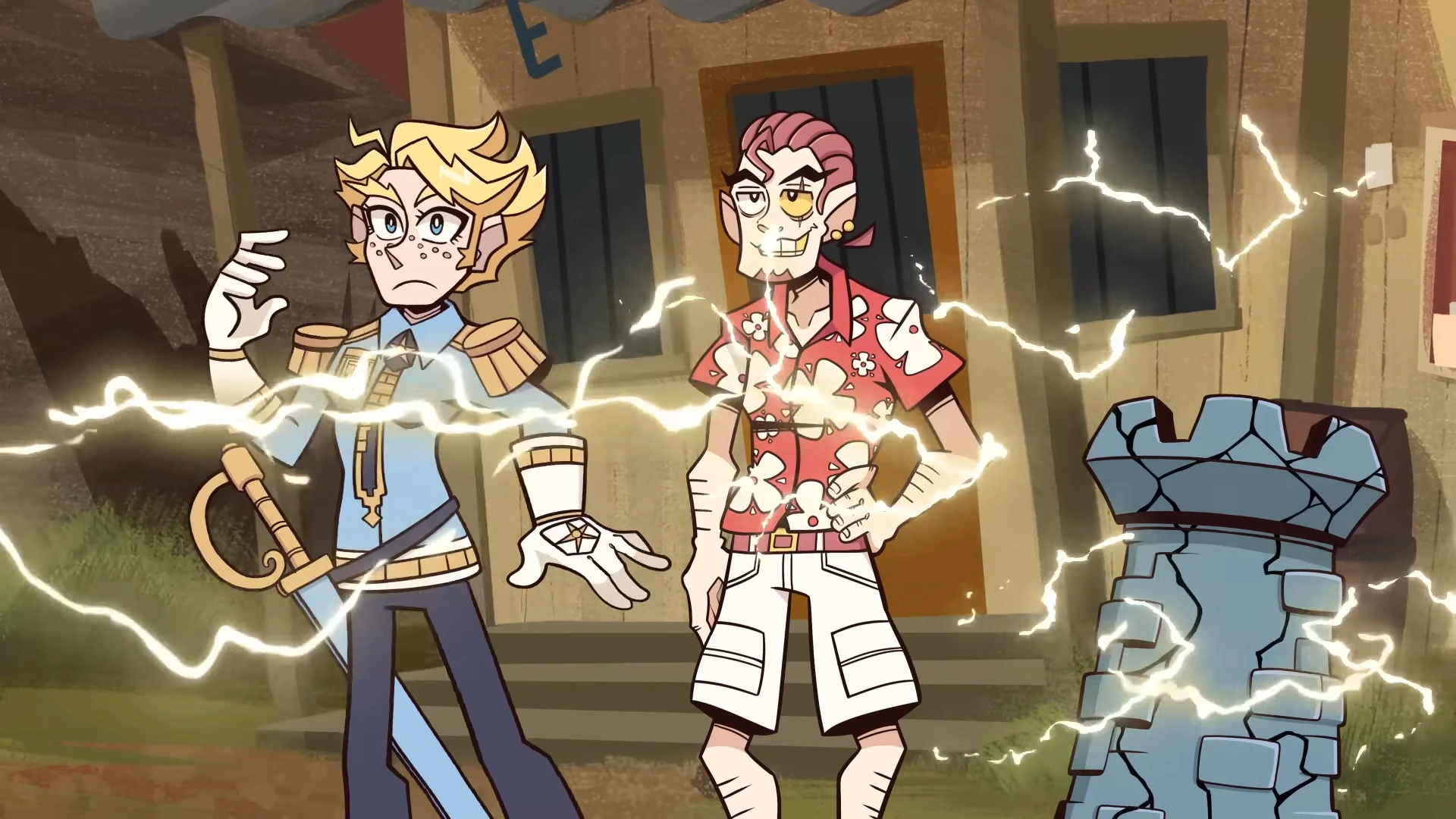 She then asks what his name is, to which Ramsey answers truthfully. She says it sounds a little suspicious before moving on and introducing herself as well. Ramsey then asks if she always zaps people. She answers yes, but only in accordance with the law. Immediately afterward, the wizard tower she constructed when arriving at Redwood Run ironically shoots at public property.
