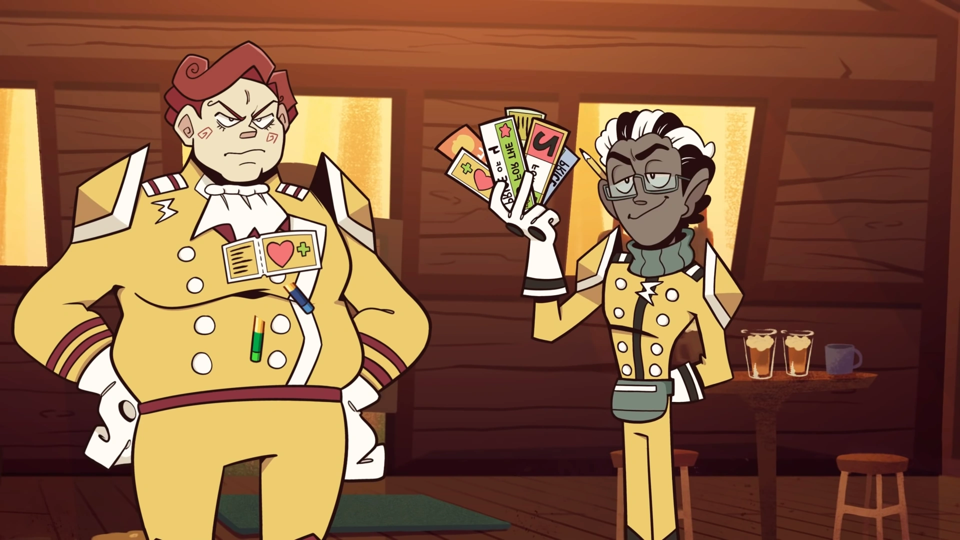 Inside Howdy Morning's Tavern, Percival King attempts to arrest Giovanni Potage for his theft of the Arsene Amulet. casusing Giovanni to scream in surprise at the appearance of the police officer, the group of Banzai Blasters occupying the tavern mirrors Giovanni. Afterward, they swarm around Percy, Bugsy Pugsler and Arnold Markdown then enter the room. Bugsy attempts to intimate Percy, but she is more concerned about the door he just broke.