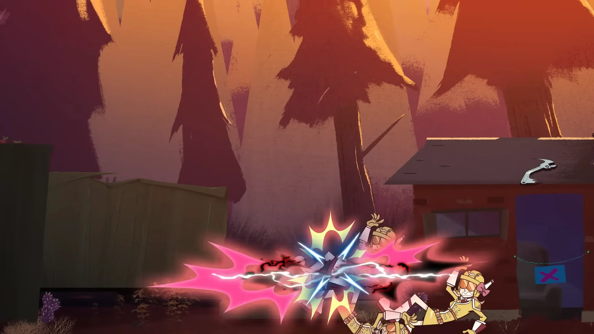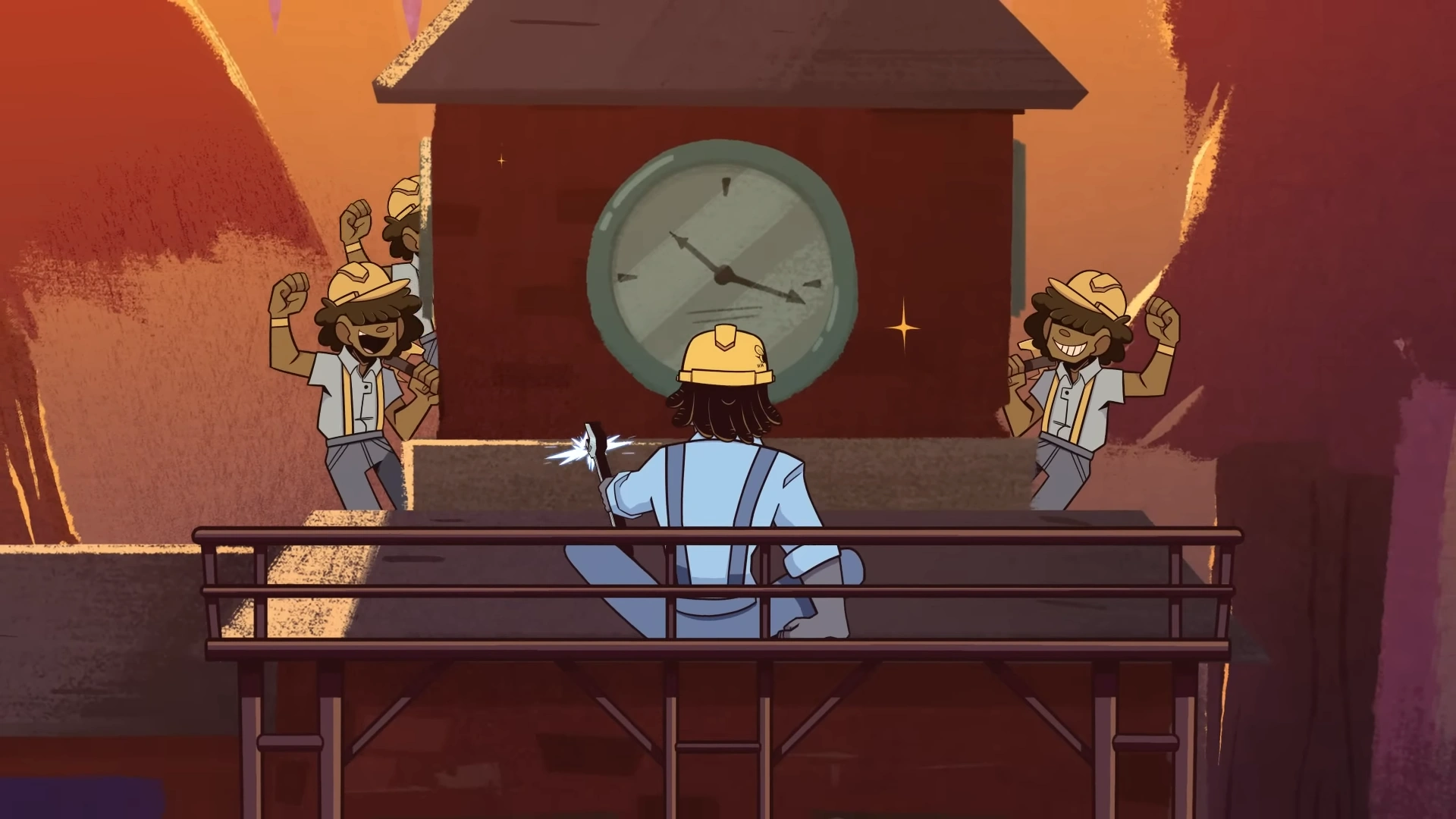 One of the Banzai Blasters suddenly notices Percy and points her peashooter at her, ordering that no one move. Howie ignores her, telling her that he has his job to do, just as she has hers. The Blaster then shoots at the clock tower, leaving a hole in the clock's glass covering, before another Blaster exclaims how the Banzai Blasters own this town. Silently enraged, Howie bends his wrench and throws it at the Blaster, knocking all three down and boomeranging back into his hand. They then cower at his strength, with one of them saying that they were only told to look out for the useless sheriff.