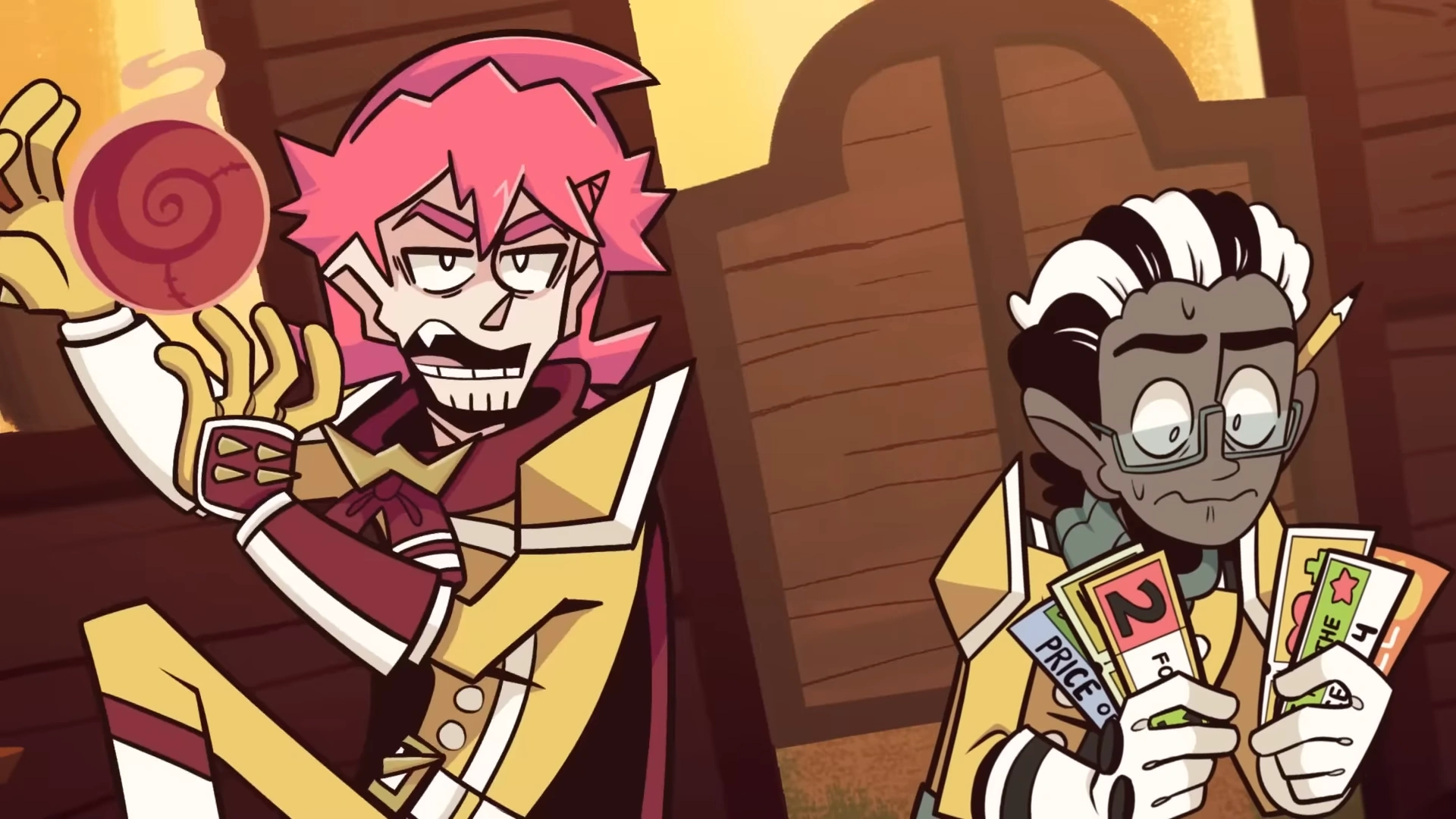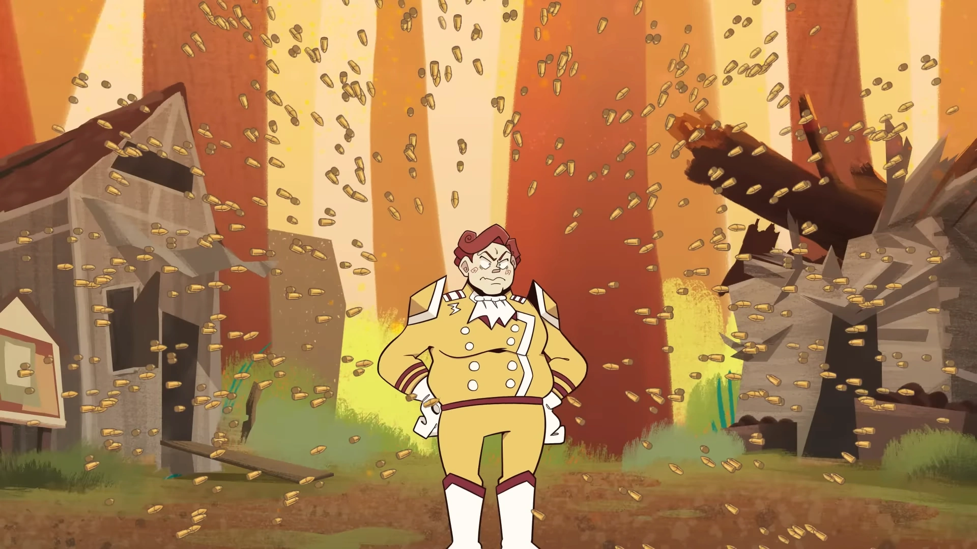 Arnold searches for a viable coupon to use on his minions before all of them are turned into gold by Ramsey. Arnold becomes distressed at the matter, what with his coupons now lacking barcodes and therefore rendering them useless. Bugsy then wakes up and, realizing he's unlikely to win, retreats to outside the tavern. All the Banzai Blasters run, except for Arnold who is quickly captured by Ramsey and Percy. They attempt to get him to rat out onto where Bugsy went.