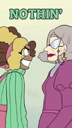 The Blyndeff Malt Shop's[4] steps were sat on by Molly Blyndeff, Stink, and Stonk while they chatted. Phoenica Fleecity walked up to then and asked if they wanted to play with her on the playground.[5] They then sang[4] to her about how that playground was the Bubblegum Renegade's territory and should be avoided since they are dangerous. She went to play on the steps anyway.[5]
