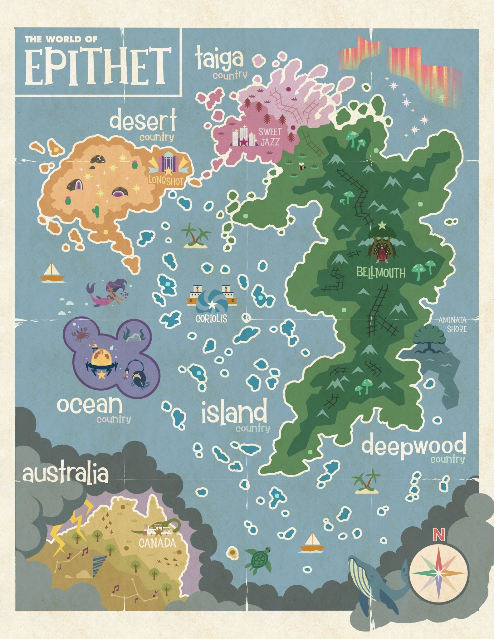 - All the countries are named after biomes, except Australia winch is named after a real-world country.